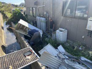 令和7年9月5日、台風15号に伴い牧之原市にて竜巻が発生し、甚大な被害をもたらした。翌6日より、役員のつながりを通じて支援を求めている地域を調査した結果、屋根や窓の破損など、個人では対応できない被害が報告された。牧之原市社会福祉協議会による支援活動が本格稼働する前段階において、緊急的な支援要請を受け、当団体が出動した。